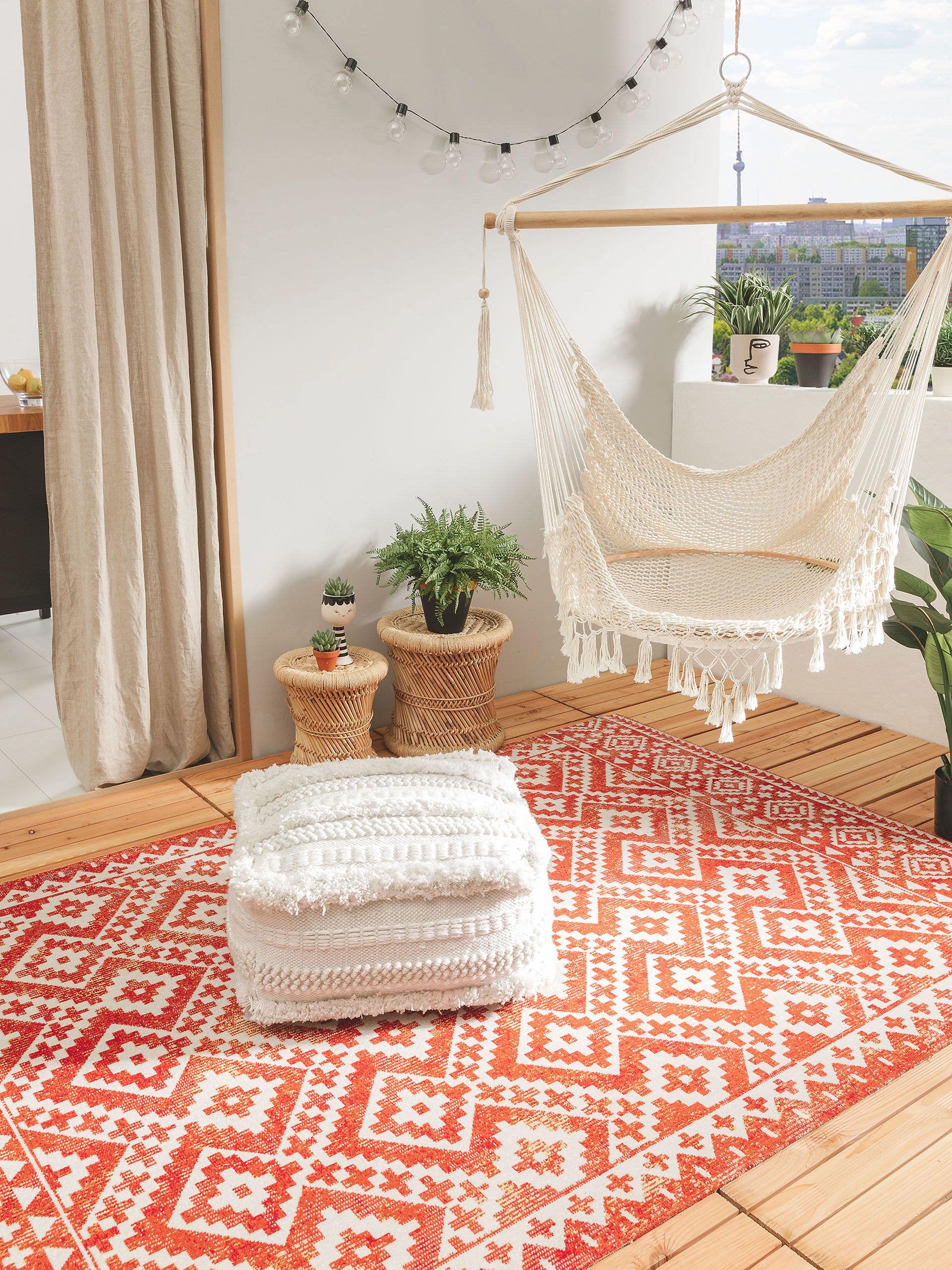 With an in- & outdoor rug from benuta PLUS you can create a homely atmosphere beneath the open sky but also add a touch of cosiness to highly-frequented interiors such as kitchens and hallways. A decisive advantage: these rugs are true all-rounders and can be used universally. While terraces gardens and balconies were previously rug-free zones in- & outdoor rugs are now welcome accessories. Rain and water don't bother them and they are particularly easy to clean which is easiest with a garden hose and - if necessary - a gentle cleanser. Of course our benuta indoor and outdoor rugs are designed to withstand the conditions of different environments: Easy-care synthetic fibres make the rugs very durable robust and long-lasting. That's why they are so popular with pet owners. With the large selection of designs and colours of our indoor and outdoor rugs you are sure to find the right model for you.